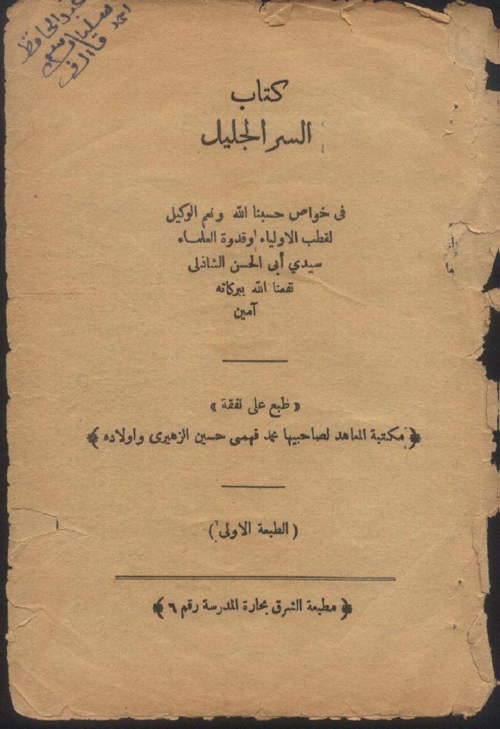 السيرة الذاتية لكاتب ” كتاب السر الجليل في خواص حسبنا الله ونعم الوكيل ” ابو الحسن الشاذلي: